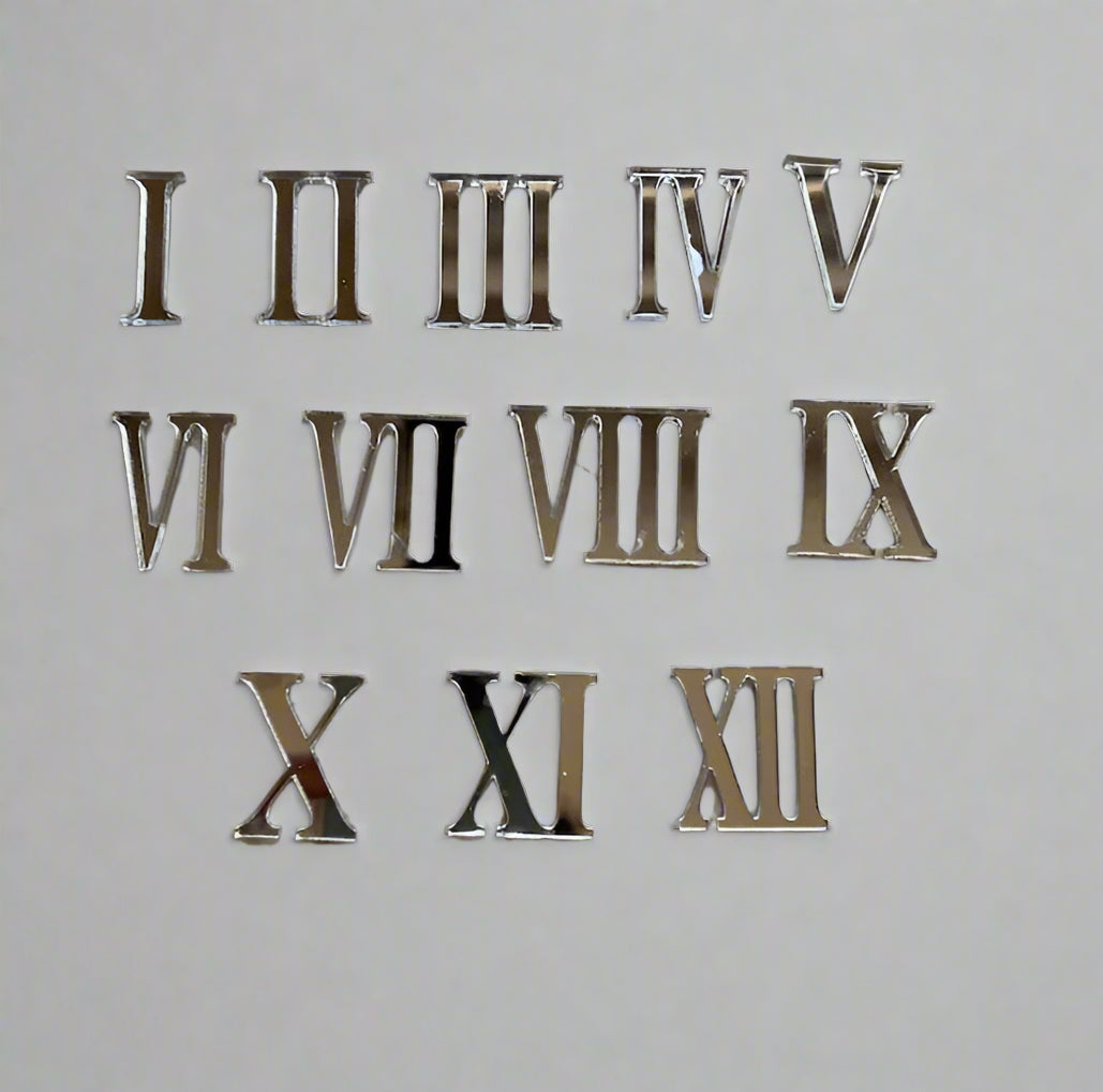 12 Acrylic Roman Numbers for clock (Silver and Black)